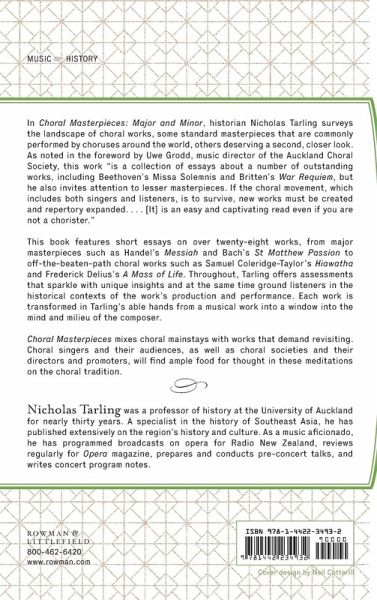 In Choral Masterpieces: Major and Minor, historian Nicholas Tarling offers short essays on over 28 works, from major masterpieces such as Handel's Messiah and Bach's St. Matthew's Passion to off-the-beaten path choral works such as Samuel Coleridge-Taylor's Hiawatha and Frederick Delius' A Mass of Life. Throughout, Tarling offers assessments that sparkle with unique insights and at the same time ground listeners in the historical contexts of these works' production and performance. Each work is transformed in Tarling's able hands from musical composition to a window into the mind and milieu of the composer.