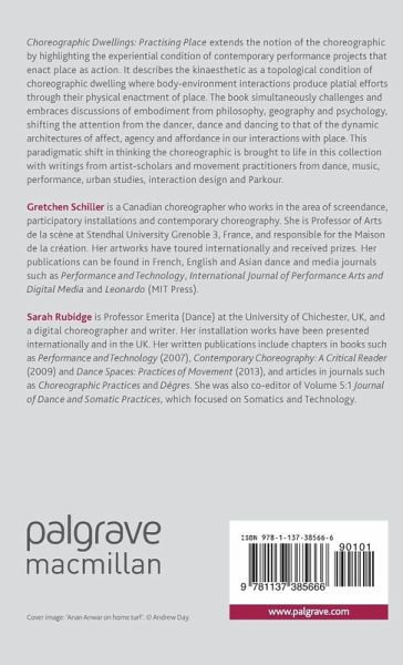 Choreographic Dwellings: Practising Place offers new readings of the kinaesthetic experiences of site-specific and nomadic performance, parkour, installation and walking practices. It extends the remit of the choreographic by reframing the kinaesthetic qualities of place as action.