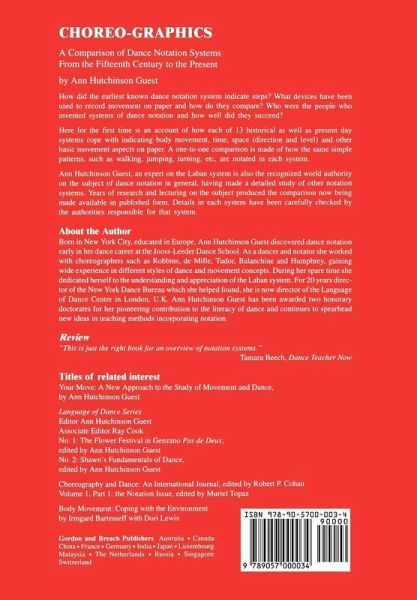 "'She [Anne Hutchinson Guest] presents a wealth of information never before assembled in a single volume and provides readers with a basic understanding of the major theoretical perspectives informing the field of Western dance notation.'." -- Rhonda Ryman of Dance Research Journal, 23/1