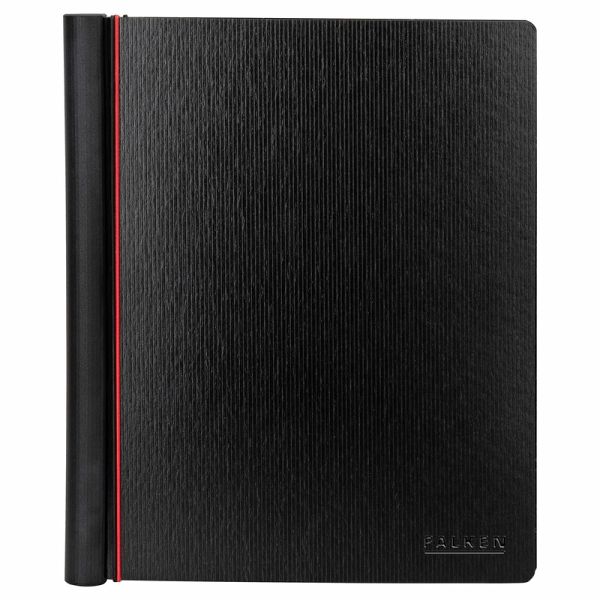 FALKEN Chormappe aus hochwertiger schwarzer Pappe mit eleganter Nadelstreifenprägung außen, mit ergonomischem Haltegriff an der Rückseite, mit einer 2 Ring Mechanik sowie 4 Verschluss- und Haltegummis zur Sicherung der Notenblätter, Innen mit zwei Kunststofftaschen an den unteren Ecken, 360g leicht, FSC® zertifiziert.