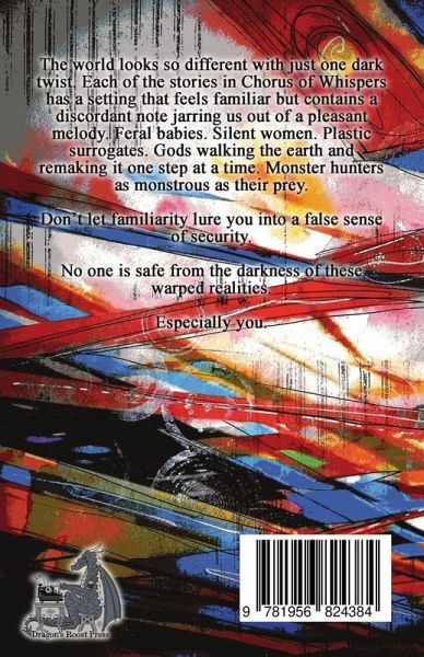 The world looks so different with just one dark twist. Each of the stories in Chorus of Whispers has a setting that feels familiar but contains a discordant note jarring us out of a pleasant melody. Feral babies. Silent women. Plastic surrogates. Gods walking the earth and remaking it one step at a time. Monster hunters as monstrous as their prey. Don't let familiarity lure you into a false sense of security. No one is safe from the darkness of these warped realities. Especially you.