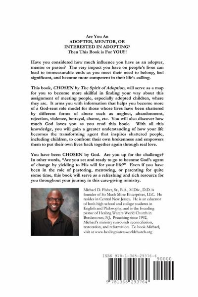 Leaders come in all capacities-from pastors, to biological and adopting parents, and even to mentors. This book, CHOSEN by The Spirit of Adoption, will both gird you with an understanding of God's involvement in connecting people to people and guide you into skillfully parenting or mentoring anyone, especially people whose lives may have been shattered by different forms of abuse (i.e., neglect, abandonment, rejection, violence, betrayal, shame and the list goes on). This book unveils the amazing virtue of God's love as Father God, a love that has been shared time and time again to inspire diverse kinds of people to confront their own brokenness and empower them to put their own lives back together again. Consider this book as a roadmap gifted to you by God to practically guide you in your efforts of transporting that special someone towards his or her destiny. Are you up for the challenge?