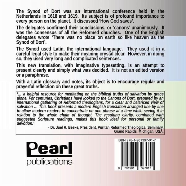 Chosen - Called - Kept: The Conclusions of the Synod of Dort translated and arranged for prayerful reflection and study. "Chosen Called Kept is a helpful resource for meditating on the biblical truths of salvation by grace alone. For centuries, Christians have looked to the Canons of Dort, prepared by an international gathering of Reformed theologians, for a clear and balanced view of salvation. But some modern readers feel like these theologians wrote the Canons in complex Latin sentences. This book presents a modern English translation arranged line by line to allow modern readers to concentrate on one phrase at a time while seeing it in relation to the whole chain of thought. The resulting clarity, combined with suggested Scripture readings, makes this book ideal for personal or family devotion." --Dr. Joel R. Beeke, President, Puritan Reformed Theological Seminary, Grand Rapids, Michigan This is a new translation of the Canons of the Synod of Dort from the original Latin.'The Canons of the Synod of Dort' is one of the great statements of the reformed faith. All the Reformed Churches met in 1619, discussed, and unanimously accepted the conclusions. It answers the question, 'How does God save?' It is the classic statement of 'The Five Points of Calvinism'.This new translation shows how rich and vibrant the Synod's statements of faith really are. The delegates' sheer delight in the Gospel can be seen as they add adjective after adjective, verb after verb to try to express truths that are inexpressible.This is book is not a paraphrase or an edited version of the Canons of Dort. All the clear positive statements are included, but in a way that makes them more accessible than ever before.By imaginative page layout the reader is encouraged to carefully and prayerfully meditate line upon line of what was decided. The layout is very suitable for catechism classes.Suggested Bible readings are given for each Article. Key Latin words are carefully translated, and their meaning is expanded in a helpful glossary.To encourage its regular use in personal prayer and reflection, a 52 week reading scheme is included.