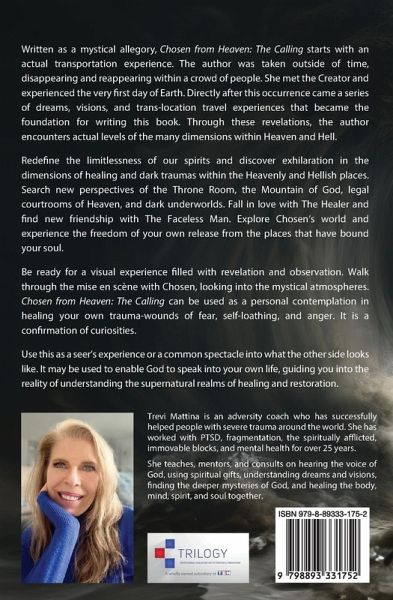 Written as a mystical allegory, Chosen from Heaven: The Calling starts with an actual transportation experience. The author was taken outside of time, disappearing and reappearing within a crowd of people. She met the Creator and experienced the very first day of Earth. Directly after this occurrence came a series of dreams, visions, and trans-location travel experiences that became the foundation for writing this book. Through these revelations, the author encounters actual levels of the many dimensions within Heaven and Hell. Redefine the limitlessness of our spirits and discover exhilaration in the dimensions of healing and dark traumas within the Heavenly and Hellish places. Search new perspectives of the Throne Room, the Mountain of God, legal courtrooms of Heaven, and dark underworlds. Fall in love with The Healer and find new friendship with The Faceless Man. Explore Chosen's world and experience the freedom of your own release from the places that have bound your soul. Be ready for a visual experience filled with revelation and observation. Walk through the mise en scène with Chosen, looking into the mystical atmospheres. Chosen from Heaven: The Calling can be used as a personal contemplation in healing your own trauma-wounds of fear, self-loathing, and anger. It is a confirmation of curiosities. Use this as a seer's experience or a common spectacle into what the other side looks like. It may be used to enable God to speak into your own life, guiding you into the reality of understanding the supernatural realms of healing and restoration.