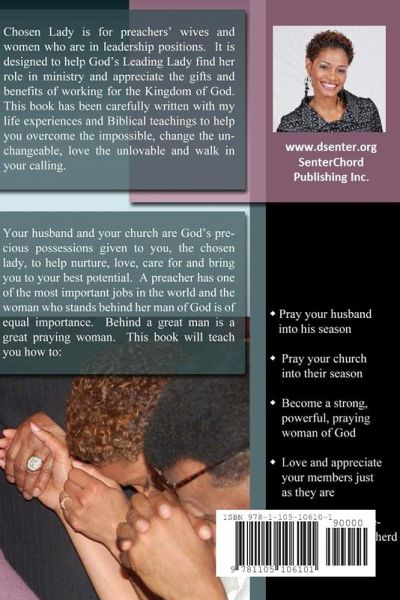 Chosen Lady is for preachers' wives and women who are in leadership positions. It is designed to help God's Leading Lady find her role in ministry and appreciate the gifts and benefits of working for the Kingdom of God. This book has been carefully written with my life experiences, and Biblical teachings to help you overcome the impossible, change the unchangeable,love the unlovable and walk in your calling. Your husband and your church are God's precious possessions given to you, the chosen lady, to help nurture, love, care for and bring you to your best potential. A preacher has one of the most important jobs in the world and the woman who stands behind her man of God is of equal importance. Behind a great man there is a great praying woman of God.