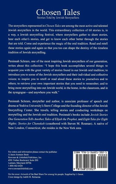 The storytellers represented in Chosen Tales are among the most active and talented Jewish storytellers in the world. This extraordinary collection of 68 stories is, in a way, a Jewish storytelling festival, where storytellers gather to share stories, hear each other's stories, and get to know each other better through the stories that are told. Come and experience the magic of the oral tradition. Read and retell these stories again and again so that you too can shape the destiny of the timeless tradition of Jewish storytelling.