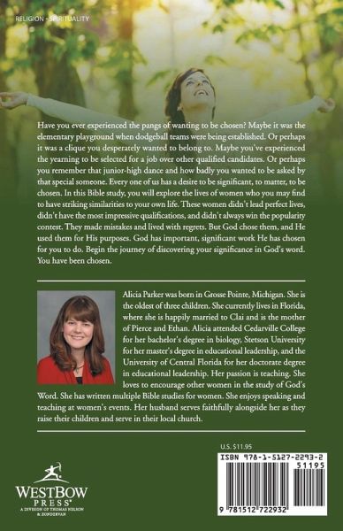 Have you ever experienced the pangs of wanting to be chosen? Maybe it was the elementary playground when dodgeball teams were being established. Or perhaps it was a clique you desperately wanted to belong to. Maybe you've experienced the yearning to be selected for a job over other qualified candidates. Or perhaps you remember that junior-high dance and how badly you wanted to be asked by that special someone. Every one of us has a desire to be significant, to matter, to be chosen. In this Bible study, you will explore the lives of women who you may find to have striking similarities to your own life. These women didn't lead perfect lives, didn't have the most impressive qualifications, and didn't always win the popularity contest. They made mistakes and lived with regrets. But God chose them, and He used them for His purposes. God has important, significant work He has chosen for you to do. Begin the journey of discovering your significance in God's word. You have been chosen.