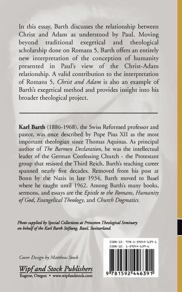 In this essay, Barth discusses the relationship between Christ and Adam as understood by Paul. Moving beyond traditional exegetical and theological scholarship done on Romans 5, Barth offers an entirely new interpretation of the conception of humanity presented in Paul's view of the Christ-Adam relationship. A valid contribution to the interpretation of Romans 5, 'Christ and Adam' is also an example of Barth's exegetical method and provides insight into his broader theological project.