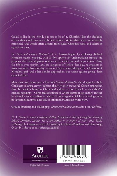 In Christ and Culture Revisited, D. A. Carson begins by exploring the H. Richard Niebuhr's classic typology, with its five options for understanding culture. He proposes that these disparate options are in reality one still larger vision. Using the Bible's own story line and the categories of biblical theology, he attempts to work out what that unifying vision is. Carson acknowledges the helpfulness of Niebuhr's grid and other similar approaches, but warns against giving them canonical force.More than just theoretical, Christ and Culture Revisited is also designed to help Christians untangle current debates about living in the world.