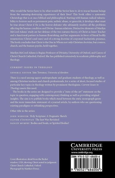 Who would the Saviour have to be, what would the Saviour have to do to rescue human beings from the meaning-destroying experiences of their lives? This book offers a systematic Christology that is at once biblical and philosophical. Starting with human radical vulnerability to horrors such as permanent pain, sadistic abuse or genocide, it develops what must be true about Christ if He is the horror-defeater who ultimately resolves all the problems affecting the human condition and Divine-human relations. Distinctive elements of Marilyn McCord Adams' study are her defence of the two-natures theory, of Christ as Inner Teacher and a functional partner in human flourishing, and her arguments in favour of literal bodily resurrection (Christ's and ours) and of a strong doctrine of corporeal Eucharistic presence. The book concludes that Christ is the One in Whom, not only Christian doctrine, but cosmos, church, and the human psyche hold together.