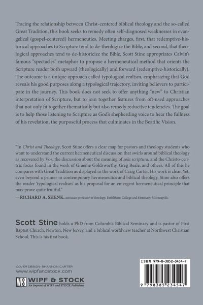 Tracing the relationship between Christ-centered biblical theology and the so-called Great Tradition, this book seeks to remedy often self-diagnosed weaknesses in evangelical (gospel-centered) hermeneutics. Meeting charges, first, that redemptive-historical approaches to Scripture tend to de-theologize the Bible, and second, that theological approaches tend to de-historicize the Bible, Scott Stine appropriates Calvin's famous ""spectacles"" metaphor to propose a hermeneutical method that orients the Scripture reader both upward (theologically) and forward (redemptive-historically). The outcome is a unique approach called typological realism, emphasizing that God reveals his good purposes along a typological trajectory, inviting believers to participate in the journey. This book does not seek to offer anything ""new"" to Christian interpretation of Scripture, but to join together features from oft-used approaches that not only fit together thematically but also remedy reductive tendencies. The goal is to help those listening to Scripture as God's shepherding voice to hear the fullness of his revelation, the purposeful process that culminates in the Beatific Vision.