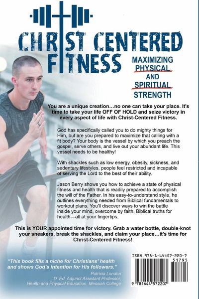 You are a unique creation...no one can take your place. It's time to take your life OFF OF HOLD and seize victory in every aspect of life with Christ-Centered Fitness. God has specifically called you to do mighty things for Him, but are you prepared to maximize that calling with a fit body? Your body is the vessel by which you preach the gospel, serve others, and live out your abundant life. This vessel needs to be healthy! With shackles such as low energy, obesity, sickness, and sedentary lifestyles, people feel restricted and incapable of serving the Lord to the best of their ability. Jason Berry shows you how to achieve a state of physical fitness and health that is readily prepared to accomplish the will of the Father. In his easy-to-understand style, he outlines everything needed from Biblical fundamentals to workout plans. You'll discover ways to win the battle inside your mind, overcome by faith, Biblical truths for health-all at your fingertips. This is YOUR appointed time for victory. Grab a water bottle, double-knot your sneakers, break the shackles, and claim your place...it's time for Christ-Centered Fitness!