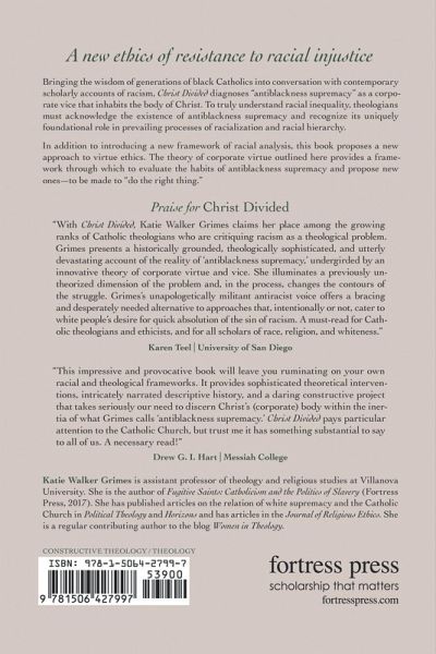 Bringing the wisdom of generations of black Catholics into conversation with contemporary scholarly accounts of racism, Christ Divided diagnoses "antiblackness supremacy" as a corporate vice that inhabits the body of Christ. Antiblackness supremacy operates as a unique form of oppression: it arises from the enduring association of blackness with slave status and plays a foundational role in processes of racialization and racial hierarchy in the United States. In fact, since non-black people often amass power at the expense of black people, much of "white supremacy" is more accurately described as "antiblackness supremacy.