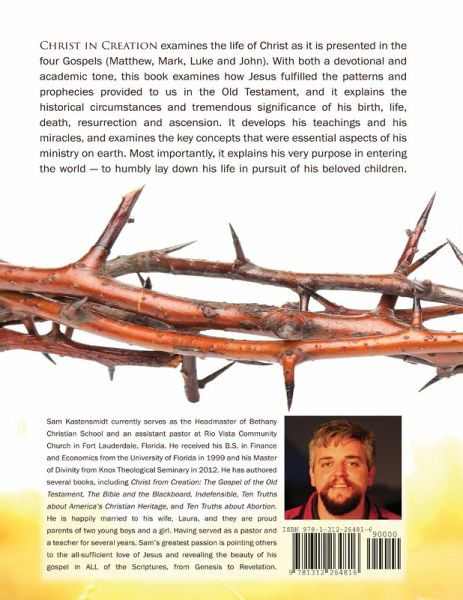 Christ in Creation examines the life of Christ as it is presented in the four Gospels (Matthew, Mark, Luke and John). With both a devotional and academic tone, this book examines how Jesus fulfilled the patterns and prophecies provided to us in the Old Testament, and it explains the historical circumstances and tremendous significance of his birth, life, death, resurrection and ascension. It develops his teachings and miracles, and examines the key concepts that were essential aspects of his ministry on earth. Most importantly, it explains his very purpose in entering the world - to humbly lay down his life in pursuit of his beloved children.