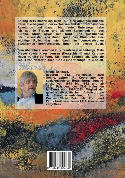 Michel Schaack, geboren 1942, verheiratet, zwei Söhne, Lehrer i.R., Koordinator des sozialengagierten Bettemburger Jugendchors von 1973 bis 1992 und ab 2012, Präsident der ONG Niños de la Tierra von 1987-2013, Mitglied der gesellschaftspolitischen Arbeitsgruppe der Erwachsenenbildung, Autor des Buches Christ Sein. Mit Zorn und Zärtlichkeit (erschienen 2014; inzwischen vergriffen).