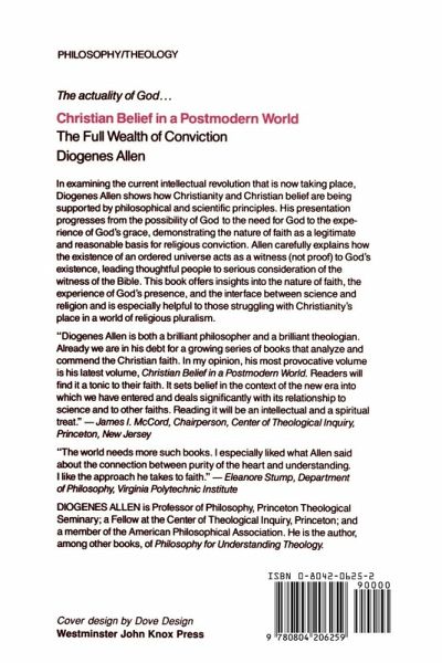 This book provides a philosophical argument for the reasonableness of Christian faith in today's world. Diogenes Allen shows how Christian belief is now being supported by scientific and philosophical principles--perhaps for the first time in 300 years.