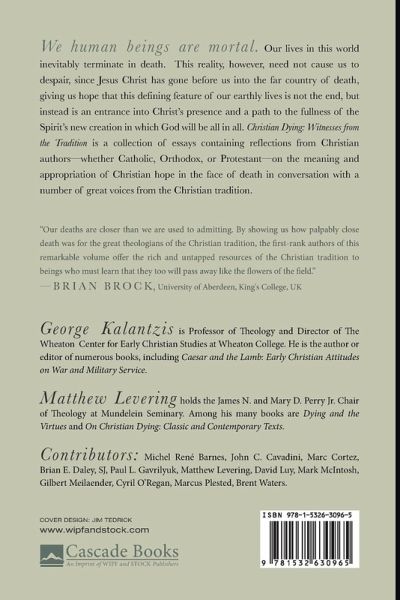 We human beings are mortal. Our lives in this world inevitably terminate in death. This reality, however, need not cause us to despair, since Jesus Christ has gone before us into the far country of death, giving us hope that this defining feature of our earthly lives is not the end, but instead is an entrance into Christ's presence and a path to the fullness of the Spirit's new creation in which God will be all in all. Christian Dying: Witnesses from the Tradition is a collection of essays containing reflections from Christian authors--whether Catholic, Orthodox, or Protestant--on the meaning and appropriation of Christian hope in the face of death in conversation with a number of great voices from the Christian tradition. CONTRIBUTORS: Michel Rene Barnes, John C. Cavadini, Marc Cortez, Brian E. Daley, S.J., Paul L. Gavrilyuk, Matthew Levering, David Luy, Mark McIntosh, Gilbert Meilaender, Cyril O'Regan, Marcus Plested, Brent Waters.