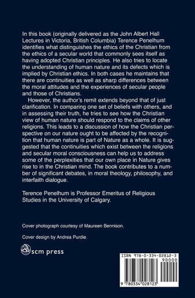 In this book (originally delivered as the John Albert Hall Lectures in Victoria, British Columbia) Terence Penelhum identifies what distinguishes the ethics of the Christian from the ethics of a secular world that commonly sees itself as having adopted Christian principles. He also tries to locate the understanding of human nature and its defects which is implied by Christian ethics. In both cases he maintains that there are continuities as well as sharp differences between . the moral attitudes and the experiences of secular people and those of Christians. However, the author's remit extends beyond that of just clarification. In comparing one set of beliefs with others, and in assessing their truth, he tries to see how the Christian view of human nature should respond to the claims of other religions. This leads to a discussion of how the Christian perspective on our nature ought to be affected by the recognition that human nature is part of Nature as a whole. It is suggested that the continuities which exist between the religions and secular moral consciousness can help us to address some of the perplexities that our own place in Nature gives rise to in the Christian mind. The book contributes to a number of significant debates, in moral theology, philosophy, and interfaith dialogue.