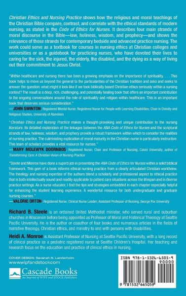 Christian Ethics and Nursing Practice shows how the religious and moral teachings of the Christian Bible compare, contrast, and correlate with the ethical standards of modern nursing, as stated in the Code of Ethics for Nurses. It describes four main strands of moral discourse in the Bible--law, holiness, wisdom, and prophecy--and shows the relevance of those strands for contemporary bedside and advanced practice nursing. The work could serve as a textbook for courses in nursing ethics at Christian colleges and universities or as a guidebook for practicing nurses, who have devoted their lives to caring for the sick, the injured, the elderly, the disabled, and the dying as a way of living out their commitment to Jesus Christ.