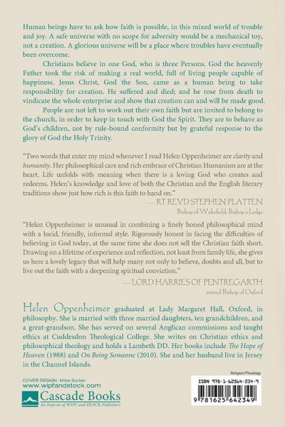 Helen Oppenheimer graduated at Lady Margaret Hall, Oxford, in philosophy. She is married with three married daughters, ten grandchildren, and a great-grandson. She has served on several Anglican commissions and taught ethics at Cuddesdon Theological College. She writes on Christian ethics and philosophical theology and holds a Lambeth DD. Her books include The Hope of Heaven (1988) and On Being Someone (2010). She and her husband live in Jersey in the Channel Islands.