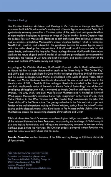 The Christian Goddess examines the goddess-figures in the fantasies and fairy tales of George MacDonald. Bonnie Gaarden asserts that MacDonald, a Victorian Scot who wrote one of the first adult fantasy novels produced in English and became a powerful influence on C. S. Lewis, also "anticipated the modern quest for the feminine face of God. " Gaarden analyzes the feminine divinities in MacDonald's fantasy literature both as archetypes identified by Carl Jung and his followers and as emblems of MacDonald's Romantic Christian theology, which couples orthodox Trinitarianism with universalism-the belief that all will be saved.