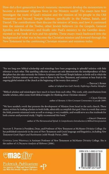 How did a first-generation Jewish messianic movement develop the momentum to become a dominant religious force in the Western world? The essays here first investigate the roots of God's mission and the mission of his people in the Old Testament and Second Temple Judaism, specifically in the Psalms, Isaiah, and Daniel. The contributions then discuss the mission of Jesus, and how it continued into the mission of the Twelve, other Jewish believers (in the Gospels, General Epistles, and Revelation), and finally into Paul's ministry to the Gentiles documented in the book of Acts and his epistles. These essays reach backward into the background of what was to become the Christian mission and forward through the New Testament to the continuing Christian mission and missions today.