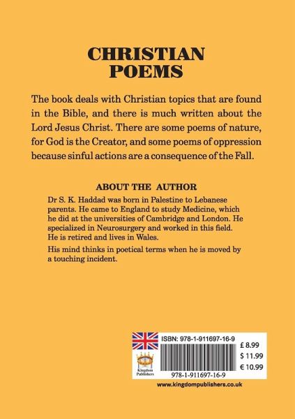 The book deals with Christian topics that are found in the Bible, and there is much written about the Lord Jesus Christ. There are some poems of nature, for God is the Creator, and some poems of oppression because sinful actions are a consequence of the Fall.