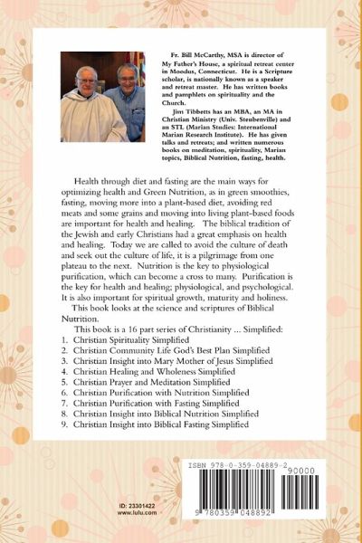 Health through diet and fasting are the main ways for optimizing health and Green Nutrition, as in green smoothies, fasting, moving more into a plant-based diet, avoiding red meats and some grains and moving into living plant-based foods are important for health and healing. The biblical tradition of the Jewish and early Christians had a great emphasis on health and healing. Today we are called to avoid the culture of death and seek out the culture of life, it is a pilgrimage from one plateau to the next. Nutrition is the key to physiological purification, which can become a cross to many. Purification is the key for health and healing; physiological, and psychological. It is also important for spiritual growth, maturity and holiness.