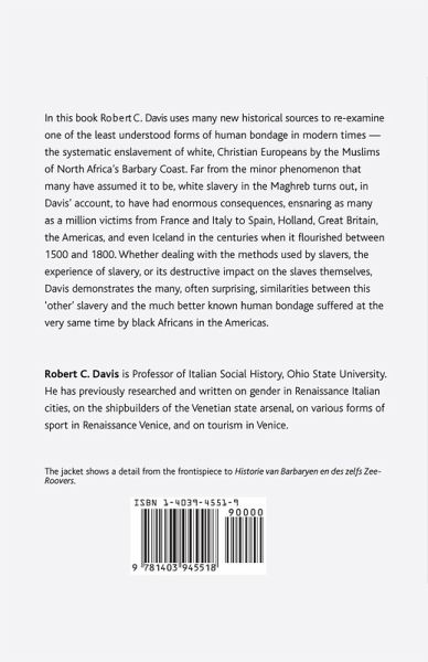 This is a study that digs deeply into this 'other' slavery, the bondage of Europeans by North-African Muslims that flourished during the same centuries as the heyday of the trans-Atlantic trade from sub-Saharan Africa to the Americas. Here are explored the actual extent of Barbary Coast slavery, the dynamic relationship between master and slave, and the effects of this slaving on Italy, one of the slave takers' primary targets and victims.