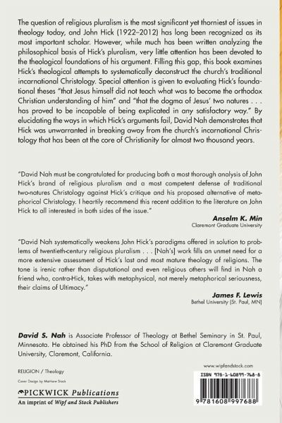 The question of religious pluralism is the most significant yet thorniest of issues in theology today, and John Hick (1922-2012) has long been recognized as its most important scholar. However, while much has been written analyzing the philosophical basis of Hick's pluralism, very little attention has been devoted to the theological foundations of his argument. Filling this gap, this book examines Hick's theological attempts to systematically deconstruct the church's traditional incarnational Christology. Special attention is given to evaluating Hick's foundational theses "that Jesus himself did not teach what was to become the orthodox Christian understanding of him" and "that the dogma of Jesus' two natures . . . has proved to be incapable of being explicated in any satisfactory way." By elucidating the ways in which Hick's arguments fail, David Nah demonstrates that Hick was unwarranted in breaking away from the church's incarnational Christology that has been at the core of Christianity for almost two thousand years.