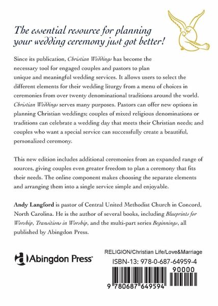This exciting resource will help engaged couples design a unique and meaningful wedding service. With guidance from their pastor, the couple can select the different elements of their wedding liturgy from a menu of choices in ceremonies from over twenty denominational traditions from around the world.