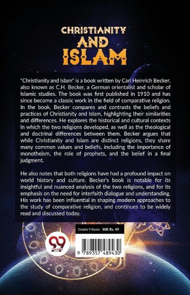 "Christianity and Islam" is a book written by Carl Heinrich Becker, also known as C.H. Becker, a German orientalist and scholar of Islamic studies. The book was first published in 1910 and has since become a classic work in the field of comparative religion. In the book, Becker compares and contrasts the beliefs and practices of Christianity and Islam, highlighting their similarities and differences. He explores the historical and cultural contexts in which the two religions developed, as well as the theological and doctrinal differences between them. Becker argues that while Christianity and Islam are distinct religions, they share many common values and beliefs, including the importance of monotheism, the role of prophets, and the belief in a final judgment. He also notes that both religions have had a profound impact on world history and culture. Becker's book is notable for its insightful and nuanced analysis of the two religions, and for its emphasis on the need for interfaith dialogue and understanding. His work has been influential in shaping modern approaches to the study of comparative religion, and continues to be widely read and discussed today.