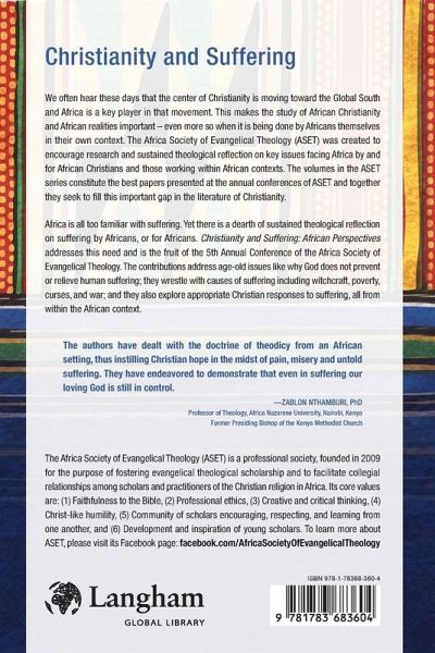 We often hear these days that the center of Christianity is moving toward the Global South and Africa is a key player in that movement. This makes the study of African Christianity and African realities important - even more so when it is being done by Africans themselves in their own context. The Africa Society of Evangelical Theology (ASET) was created to encourage research and sustained theological reflection on key issues facing Africa by and for African Christians and those working within African contexts. The volumes in the ASET series constitute the best papers presented at the annual conferences of ASET and together they seek to fill this important gap in the literature of Christianity. Africa is all too familiar with suffering. Yet there is a dearth of sustained theological reflection on suffering by Africans, or for Africans. Christianity and Suffering: African Perspectives addresses this need and is the fruit of the 5th Annual Conference of the Africa Society of Evangelical Theology. The contributions address age-old issues like why God does not prevent or relieve human suffering; they wrestle with causes of suffering including witchcraft, poverty, curses, and war; and they also explore appropriate Christian responses to suffering, all from within the African context.
