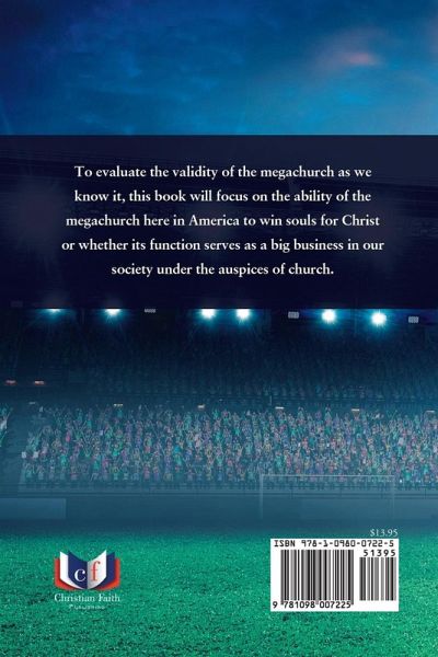 To evaluate the validity of the megachurch as we know it, this book will focus on the ability of the megachurch here in America to win souls for Christ or whether its function serves as a big business in our society under the auspices of church.