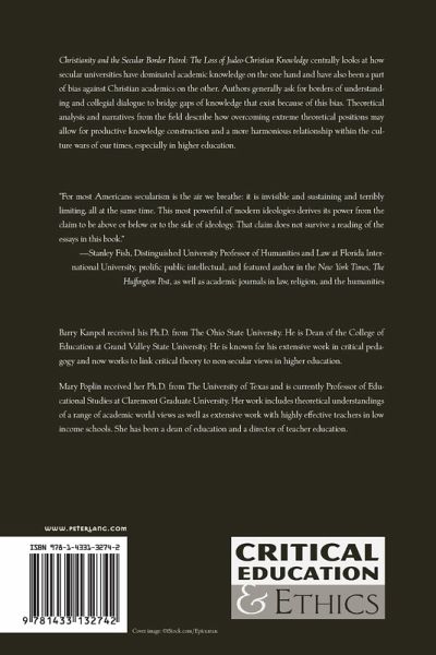 Barry Kanpol received his Ph.D. from The Ohio State University. He is Dean of the College of Education at Grand Valley State University. He is known for his extensive work in critical pedagogy and now works to link critical theory to non-secular views in higher education. Mary Poplin received her Ph.D. from The University of Texas and is currently Professor of Educational Studies at Claremont Graduate University. Her work includes theoretical understandings of a range of academic world views as well as extensive work with highly effective teachers in low income schools. She has been a dean of education and a director of teacher education.