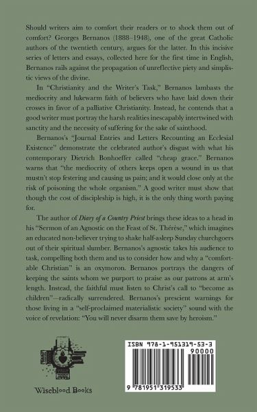Should writers aim to comfort their readers or to shock them out of comfort? Georges Bernanos (1888-1948), one of the great Catholic authors of the twentieth century, argues for the latter. In this incisive series of letters and essays, collected here for the first time in English, Bernanos rails against the propagation of unreflective piety and simplistic views of the divine. In "Christianity and the Writer's Task," Bernanos lambasts the mediocrity and lukewarm faith of believers who have laid down their crosses in favor of a palliative Christianity. Instead, he contends that a good writer must portray the harsh realities inescapably intertwined with sanctity and the necessity of suffering for the sake of sainthood. Bernanos's "Journal Entries and Letters Recounting an Ecclesial Existence" demonstrate the celebrated author's disgust with what his contemporary Dietrich Bonhoeffer called "cheap grace." Bernanos warns that "the mediocrity of others keeps open a wound in us that mustn't stop festering and causing us pain; and it would close only at the risk of poisoning the whole organism." A good writer must show that though the cost of discipleship is high, it is the only thing worth paying for. The author of Diary of a Country Priest brings these ideas to a head in his "Sermon of an Agnostic on the Feast of St. Thérèse," which imagines an educated non-believer trying to shake half-asleep Sunday churchgoers out of their spiritual slumber. Bernanos's agnostic takes his audience to task, compelling both them and us to consider how and why a "comfortable Christian" is an oxymoron. Bernanos portrays the dangers of keeping the saints whom we purport to praise as our patrons at arm's length. Instead, the faithful must listen to Christ's call to "become as children"-radically surrendered. Bernanos's prescient warnings for those living in a "self-proclaimed materialistic society" sound with the voice of revelation: "You will never disarm them save by heroism."