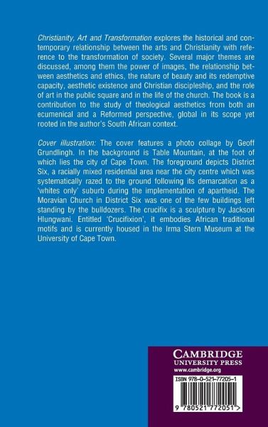 Christianity, Art and Transformation explores the historical and contemporary relationship between the arts and Christianity with reference to the transformation of society. Several major themes are discussed, among them the power of images, the relationship between aesthetics and ethics, the nature of beauty and its redemptive capacity, aesthetic existence and Christian discipleship, and the role of art in the public square and in the life of the Church. The book is a contribution to the study of theological aesthetics from both an ecumenical and Reformed perspective, global in its scope yet rooted in the author's South African context.