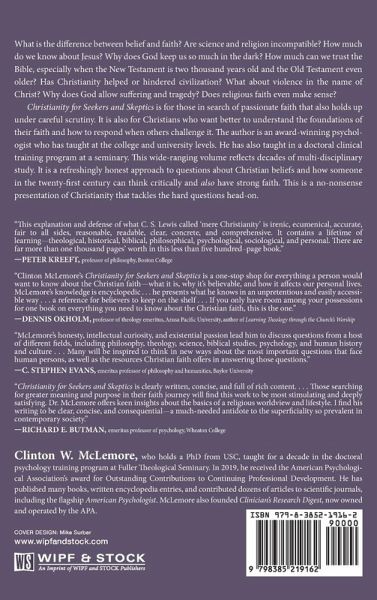 What is the difference between belief and faith? Are science and religion incompatible? How much do we know about Jesus? Why does God keep us so much in the dark? How much can we trust the Bible, especially when the New Testament is two thousand years old and the Old Testament even older? Has Christianity helped or hindered civilization? What about violence in the name of Christ? Why does God allow suffering and tragedy? Does religious faith even make sense? Christianity for Seekers and Skeptics is for those in search of passionate faith that also holds up under careful scrutiny. It is also for Christians who want better to understand the foundations of their faith and how to respond when others challenge it. The author is an award-winning psychologist who has taught at the college and university levels. He has also taught in a doctoral clinical training program at a seminary. This wide-ranging volume reflects decades of multi-disciplinary study. It is a refreshingly honest approach to questions about Christian beliefs and how someone in the twenty-first century can think critically and also have strong faith. This is a no-nonsense presentation of Christianity that tackles the hard questions head-on.