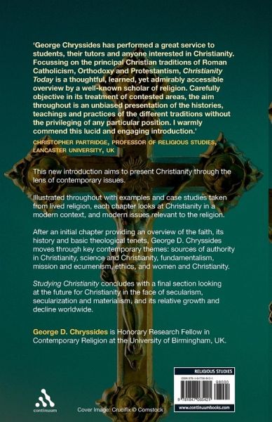 A series of case studies illustrate the contemporary issues facing Christianity in contemporary society. This new introduction aims to present Christianity through the lens of contemporary issues. Illustrated throughout with examples and case studies taken from lived religion, each chapter looks at Christianity in a modern context, and modern issues relevant to the religion. After an initial chapter providing an overview of the faith, its history and basic theological tenets, George Chryssides moves through key contemporary themes: sources of authority in Christianity, science and Christianity, fundamentalism, mission and ecumenism, ethics, and women and Christianity. This title concludes with a final section looking at the future for Christianity in the face of secularism, secularisation and materialism, and its relative growth and decline worldwide. These useful guides aim to introduce religions through the lens of contemporary issues, illustrated throughout with examples and case studies taken from lived religion. The perfect companion for the student of religion, each guide interprets the teachings of the religion in question in a modern context and applies them to modern day scenarios.