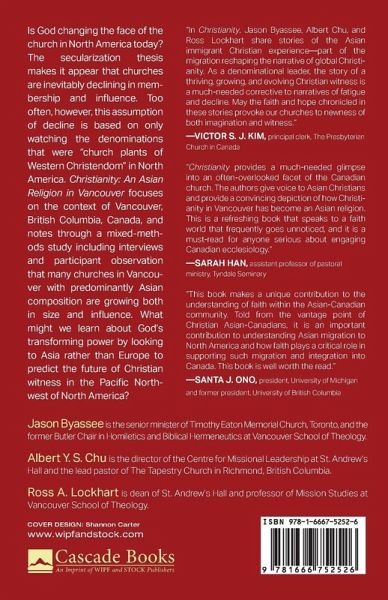 Is God changing the face of the church in North America today? The secularization thesis makes it appear that churches are inevitably declining in membership and influence. Too often, however, this assumption of decline is based on only watching the denominations that were "church plants of Western Christendom" in North America. Christianity: An Asian Religion in Vancouver focuses on the context of Vancouver, British Columbia, Canada, and notes through a mixed-methods study including interviews and participant observation that many churches in Vancouver with predominantly Asian composition are growing both in size and influence. What might we learn about God's transforming power by looking to Asia rather than Europe to predict the future of Christian witness in the Pacific Northwest of North America?