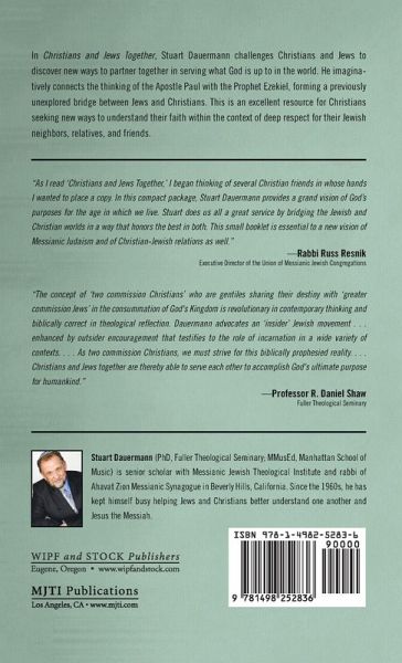 In Christians and Jews Together, Stuart Dauermann challenges Christians and Jews to discover new ways to partner together in serving what God is up to in the world. He imaginatively connects the thinking of Paul the Apostle with the Prophet Ezekiel, forming a previously unexplored bridge between Jews and Christians. This is an excellent resource for Christians seeking new ways to understand and share their faith within the context of deep respect for their Jewish neighbors, relatives, and friends.