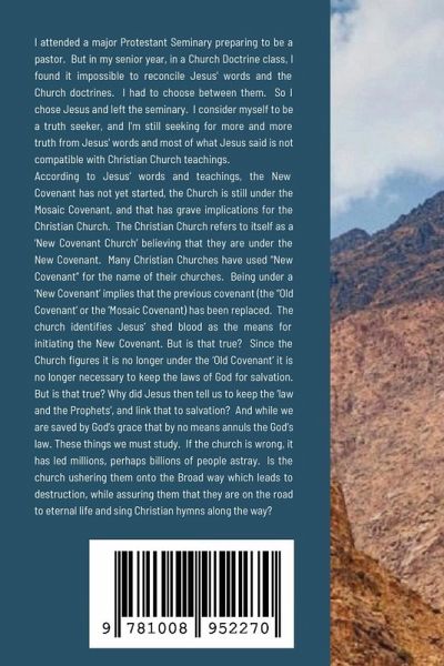 The Christian Church refers to itself as a 'New Covenant Church' believing that they are under the New Covenant. Many Churches have used "New Covenant" for the name of their churches. Being under a 'New Covenant' implies that the previous covenant (the "Old Covenant' or the 'Mosaic Covenant) has been replaced. The church identifies Jesus' shed blood as the means for initiating the New Covenant. But is that true? Since the Church figures it is no longer under the 'Old Covenant' it is no longer necessary to keep the laws of God for salvation. But is that true? Why did Jesus then tell us to keep the 'Law and the Prophets' and link it to salvation? These things we must study. If the church is wrong, it has led millions, perhaps billions of people astray. Is the church ushering them onto the Broad way which leads to destruction, while assuring them that they are on the road to eternal life and sing Christian hymns along the way?