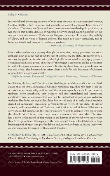 In Christians, the State, and War: An Ancient Tradition for the Modern World, Gordon Heath rethinks the binary world of Christians and war. He proposes a different starting point for discussions of violence that originates and orients itself with a tradition found initially within the teaching and experience of the pre-Constantinian early church.