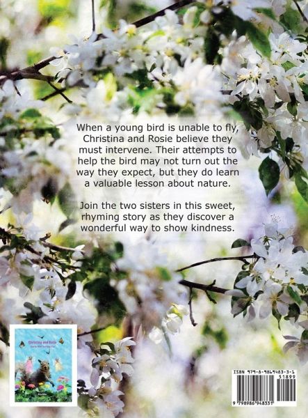 This is Book #2 in the Christina and Rosie series, about sisters who are able to turn into fairies in order to help animals in need. When a young bird is unable to fly, Christina and Rosie believe they must intervene. Their attempts to help the bird may not turn out the way they expect, but they do learn a valuable lesson about nature. Join the two sisters in this sweet, rhyming story as they discover a wonderful way to show kindness.
