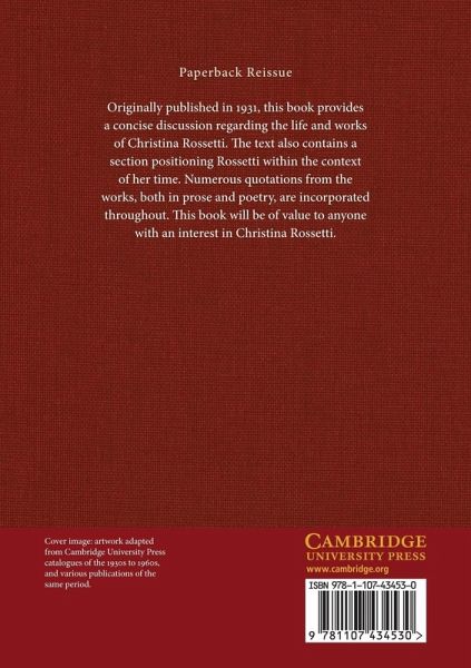 Originally published in 1931, this book provides a concise discussion regarding the life and works of Christina Rossetti. The text also contains a section positioning Rossetti within the context of her time. Numerous quotations from the works, both in prose and poetry, are incorporated throughout. This book will be of value to anyone with an interest in Christina Rossetti.