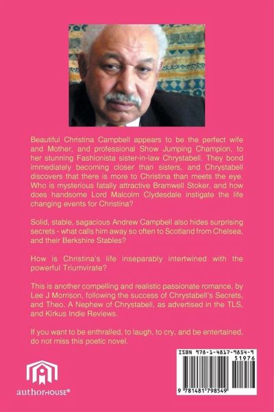 Beautiful Christina Campbell appears to be the perfect wife and Mother, and professional Show Jumping Champion, to her stunning Fashionista sister-in-law Chrystabell. They bond immediately becoming closer than sisters, and Chrystabell discovers that there is more to Christina than meets the eye. Who is mysterious fatally attractive Bramwell Stoker, and how does handsome Lord Malcolm Clydesdale instigate the life changing events for Christina? Solid, stable, sagacious Andrew Campbell also hides surprising secrets - what calls him away so often to Scotland from Chelsea, and their Berkshire Stables? How is Christina's life inseparably intertwined with the powerful Triumvirate? This is another compelling and realistic passionate romance, by Lee J Morrison, following the success of Chrystabell's Secrets, and Theo, A Nephew of Chrystabell, as advertised in the TLS, and Kirkus Indie Reviews. If you want to be enthralled, to laugh, to cry, and be entertained, do not miss this poetic novel.