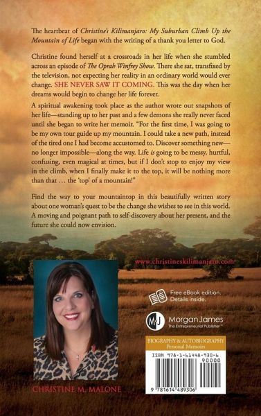 Christine's Kilimanjaro is a memoir about one woman's suburban climb up the mountain of life, with a clear message in understanding the power of your vision and the ability to change your destiny.