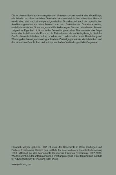 Die in diesem Buch zusammengefassten Untersuchungen vereint eine Grundfrage, nämlich die nach der christlichen Geschichtssicht des lateinischen Mittelalters. Gesucht wurde aber, statt nach einem paradigmatischen Grundmodell, nach den spezifischen Annäherungsweisen einzelner Autoren: statt nach feststehenden Gemeinsamkeiten, nach Unterschieden, Spannungen und Veränderungen. Die drei betrachteten Autoren zeigen ihre Eigenheit nicht nur in der Behandlung einzelner Themen (wie: das Fegefeuer, das Individuum, die Fortuna, die Zisterzienser, die antike Mythologie, Karl der Große, die nachbiblischen Juden), sondern auch und vor allem in der Darstellung und Wertung der damaligen historiographischen Zentralgegenstände, der biblischen und der römischen Geschichte, und in ihrer sinnhaften Verbindung mit der Gegenwart.