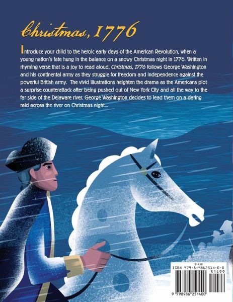 Introduce your child to the heroic early days of the American Revolution, when a young nation's fate hung in the balance on a snowy Christmas night in 1776. ¿¿¿¿Written in rhyming verse that is a joy to read aloud, Christmas, 1776 follows George Washington and his continental army as they struggle for freedom and independence against the powerful British army. The vivid illustrations heighten the drama as the Americans plot a surprise counterattack after being pushed out of New York City and all the way to the far side of the Delaware river. George Washington decides to lead them on a daring raid across the river on Christmas night... By introducing your child to one of America's early and dramatic victories, you'll get them hooked on American history from a young age. Share this wonderful story with them and watch as their curiosity and interest in their country's history grows.¿¿¿