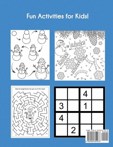 Jumbo Activity Book New for Christmas 2019 100 Activities for Ages 6-12 Big Christmas activity book for kids 6-12. Celebrate the holiday with this fun-filled activity book including mazes, connect the dot puzzles, sudoku, word search, coloring pages, drawing, picture puzzles, and more. Fun and challenging activity book for kids will provide hours of enjoyment and learning. Printed on high-quality, pure white paper Large 8 1/2 by 11 inch pages Educational and fun holiday-themed activities including Santa Claus, snowmen, angels, reindeer, holiday decorations, and Christmas trees Makes a great Christmas gift or stocking stuffer
